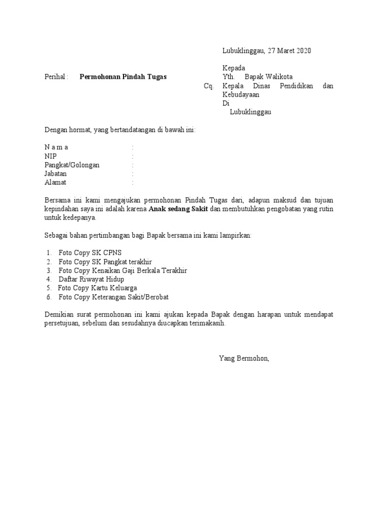Pindah datang wni dalam satu desa/kelurahan misalnya masa berlaku surat pindah adalah 30 hari kerja, setelah surat pindah terbit untuk segera diurus di. Surat pindah ini tidak hanya berlaku untuk data kependudukan saja, melainkan juga untuk urusan administrasi lainnya. Contoh surat pindah bagian kerja contoh surat perintah kerja untuk perbaikan mesin. Dokument yang selalu wajib dalam pelamaran kerja iyalah surat lamaran karena sebagai dasar kelengkapan dokument dokument lainnya. Berikut beberapa contoh surat permohonan mutasi kerja yang baik dan benar untuk berbagai macam jabatan dan alasan yang bisa menjadi referensi.